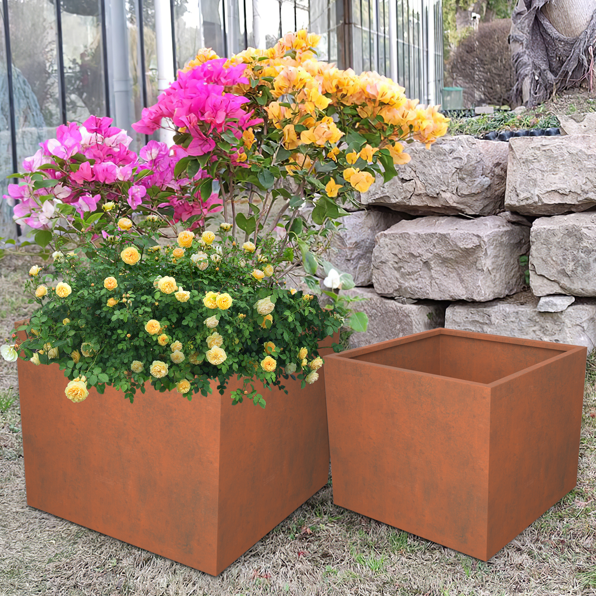 Elevens Corten Steel Planter Large Planters For Outdoor Plants Tall Planter Garden Steel Planter For Patio Deck And Backyard Brown 20 X 20 X 20 Inch Amazon De Garden